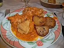 La châtaigne apporte à ce boudin à la fois une texture moelleuse et suave. Ce mets s’accompagne d’une purée de pommes de terre ou de pommes sautées au beurre[27].