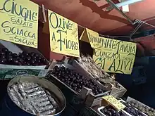 La culture de l'olivier est une tradition ancienne en Sicile. En plus de faire de l'huile, les olives sont également vendus au kilo pour l'assaisonnement. En langue sicilienne, elles sont appelés alivi cunzati, avec du vinaigre, de l'ail, du persil, du poivre, de l'origan, des tranches de carotte, du céleri, du piment haché et de l'huile.