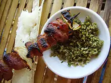 - des sauces fermentées, comme la pâte de crevettes (salaison de crevettes), le vinaigre ou les bonbons amers, la noix de coco.