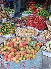- Chè[15] : dessert typique vietnamien. Il en existe plusieurs sortes. En général, il s'agit d'un élément consistant (agar-agar, haricots, grains de maïs) baignant dans du lait de coco sucré. Il y a notamment le bánh lọt et le dessert à trois couleurs (chè ba màu).