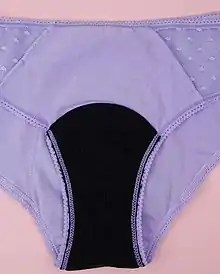 La culotte menstruelle est une protection périodique lavable utilisée par les femmes pendant leurs règles. Elle ressemble aux sous-vêtements féminins classiques, comme les culottes, shortys et les strings[6]. Elle est pour cela déclinée en plusieurs variantes, avec plusieurs coupes[7],[8] y compris pour les jeunes[3]. Une culotte menstruelle est composée de plusieurs couches de tissu : une couche imperméable, un couche absorbante et une couche de coton[9]. En fonction de l'épaisseur de l'absorbant et de la largeur de la zone technique, elle s'adapte à différents types de flux, de légers à abondants voire hémorragiques.