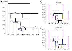 - (en) Morten Rasmussen, Yingrui Li, Eske Willerslev et al., « Ancient human genome sequence of an extinct Palaeo-Eskimo », Nature, vol. 463, , p. 757–762 (DOI 10.1038/nature08835, lire en ligne [PDF], consulté le ).