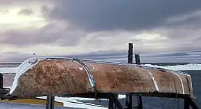 Les types de matériaux organiques fréquemment utilisés sont le bois flotté — issu de variétés d'essences telles que l'épicéa, le larix et le pin —, l'andouiller de renne et les os de cétacés (en particulier ceux des baleines)[101],[102],[103]. Pour l'archéologue Bjarne Grønnow, « l’utilisation du bois flotté a joué un rôle déterminant dans la culture matérielle sophistiquée de la société saqqaq »[102]. Le bois flotté est essentiellement utilisé dans la conception des objets destinés à la chasse, dont les lances, les flèches, les javelines, et les harpons[102][Note 12], mais également pour la fabrication des kayaks[105][106][107].