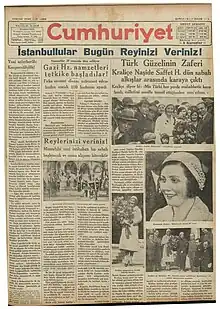 Cumhuriyet (prononcé [ d͡ʒum.hu.ɾi.'jɛt], en turc : La République) est un quotidien turc fondé le par Yunus Nadi Abalıoğlu. De tendance kémaliste de centre-gauche, il est considéré comme un des journaux de référence en Turquie. Ce journal a reçu un Right Livelihood Award (Prix Nobel alternatif) en 2016[1],[2].