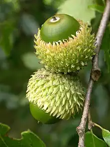 La cupule est couverte de nombreuses écailles. Dans certains genres (par exemple Castanea), les écailles se développent en épines pointues, qui protègent le fruit des écureuils et d'autres prédateurs de graines. Les épines peuvent être semi-développées comme chez le gland du chêne du Liban.