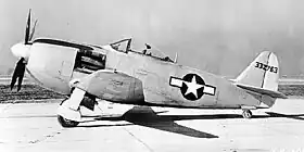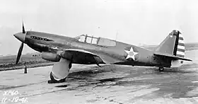 Un XP-60C en vol, propulsé par un moteur en étoile R-2800 entraînant une hélice contrarotative. Le moteur Chrysler IV-2220 (en) initialement prévu ne fut jamais installé sur l'avion. | |