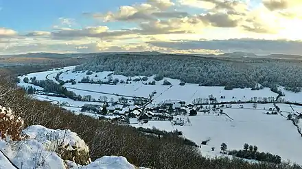 Enfin, un petit plateau bordé de falaises surplombe le village, aux alentours des 450 mètres d'altitude.