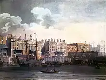 Avec la croissance du commerce, l'ouverture des quais et l'augmentation des droits pendant les guerres napoléoniennes, de plus grands locaux devinrent nécessaires au début du XIXe siècle. Pour répondre à ce besoin, un nouveau bâtiment a été commencé selon les plans de David Laing en octobre 1813, sur un site immédiatement à l'ouest du bâtiment de Ripleys [1] où Bear Quay, Crown Quay, Dice Quay et Horner's Quay se trouvaient [2] . Laing occupait le poste d'arpenteur auprès de HM Customs depuis 1810 [3] . Le 12 février 1814, l'ancien bâtiment a été détruit par un incendie, entraînant l'explosion de poudre à canon et d'alcools. En conséquence, les documents ont été récupérés jusqu'à Hackney Marshes.