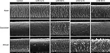 Un cheveu en bon état présente des écailles régulières, aplaties, bien imbriquées les unes dans les autres, ce qui donne à la tige pilaire sa brillance et sa souplesse. Chargée négativement, la cuticule donne au poil son affinité pour les tensioactifs cationiques et alcalins qui écartent ses écailles et permettent au produit actif (shampoing, crème dépilatoire, produits de coloration) de pénétrer[1].