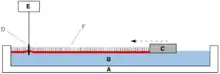 La pression de surface est mesurée grâce au tensiomètre à plaque de Wilhelmy (parties D et E sur le schéma).