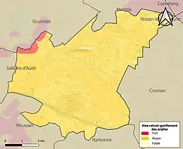 Carte des zones d'aléa retrait-gonflement des sols argileux de Cuxac-d'Aude.