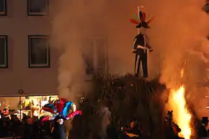 Toujours vêtu de rouge vif, symbole du feu, et coiffé d’un haut-de-forme, chapeau de cérémonie par excellence, il reçoit, le samedi après-midi, la « panûle » des mains du Bourgmestre de la ville lors d’une cérémonie d’ouverture instituée depuis 1950.