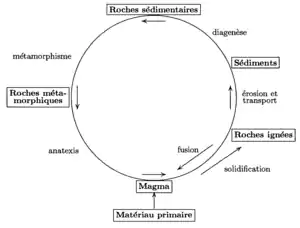 Les roches sont le résultat d'un cycle de transformations assez compliqué, nommé cycle géologique, cycle géochimique ou cycle des roches. En effet, c'est à ce cycle que nous devons la composition de la croûte terrestre et du manteau supérieur.