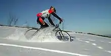 Des cyclistes roulent sur la neige bien emballée comme les pistes de motoneige. Pour aller dans les pistes de neige hors des rues, beaucoup de cyclistes hivernaux utilisent des vélos tout terrain qui peuvent être montés avec de gros pneus et les pneus sont souvent utilisés avec une faible pression, pour que plus de surface de pneu soit en contact avec la route. Des cyclistes non routiers utilisent des pneus spéciaux conçus pour une pression très basse, aussi peu que 20 PSI (1.3 bar). Des cyclistes qui vont sur les lacs gelés utilisent des pneus modifiés qui sont percés par des centaines d'écrous en fer, pour réduire le danger du glissage.