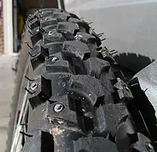 Les constructeurs des pneus comme Nokian Renkaat, Schwalbe, Kenda et Continental produisent des pneus spécifiques pour la neige et la glace. Certains sont constitués d'une matière favorisant l'adhérence, mais la plupart comportent des clous permettant une meilleure accroche sur la glace. Le nombre de clous et la structure du pneu dépendent de la pratique, urbaine ou hors route.