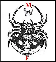 Les mâles, du moins chez les Mastophorini, sont sensiblement plus petits que les femelles (Fig.3). Il existe alors un dimorphisme sexuel volumétrique marqué comme chez les Argiopes et les Néphila.