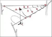En fait, bien que les structures des pièges diffèrent grandement, il existe des similitudes frappantes entre une proie suspendue à un fil en pont rompu et ballant et celle qui a été prise à la « volée » avec un bola.