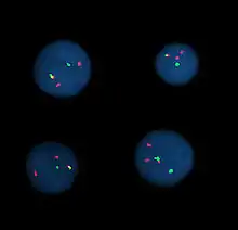La technique dite de FISH (Fluorescent In Situ Hybridization) est une technique qui permet de révéler par fluorescence grâce à des sondes d'ADN des séquences sur les chromosomes. Cela permet d'identifier des anomalies chromosomiques lors d'analyses pré- et post-natales. Chaque analyse ne permet d'identifier qu'une seule anomalie, et c'est une technique ciblée, les sondes utilisées ne sont pas choisies au hasard, mais font suite à de précédentes analyses (de biochimie en général).