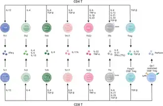 Bien que les cellules Tc1 représentent la population majeure de cellules T CD8, d'autres sous-ensembles de cellules T CD8 ont été identifiés dans diverses maladies dans des modèles animaux et humains. Les sous-ensembles de lymphocytes T CD8 ressemblent beaucoup à leurs homologues du sous-ensemble de lymphocytes T CD4, car les lymphocytes T CD4 et les lymphocytes T CD8 partagent des exigences similaires pour les signaux cytokiniques, les facteurs de transcription déterminant la lignée et les profils de cytokines effectrices.