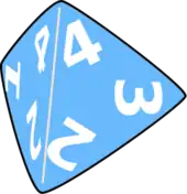 Un dé à quatre faces ou d4 en abrégé est une variante de dé comportant quatre faces.