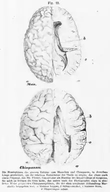 - (en) Thomas Henry Huxley, « The Brain of Man and Apes », Medical Times and Gazette, no 2, , p. 449 (lire en ligne)