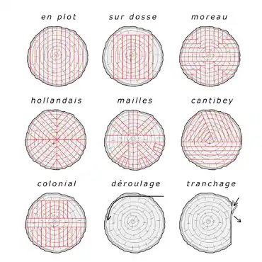 Ces deux méthodes sont utilisées pour obtenir de fines tranches de bois.