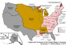 - 11 décembre, États-Unis : la portion sud du Territoire de l'Indiana devient le 19e État, l'Indiana. Le reste du territoire devient non-organisé[3].