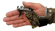 Le système de déclenchement se fait grâce à la pression de l'index sur une queue de détente. Son utilisation concerne essentiellement le loisir et notamment la chasse à l'arc. En effet, son système de bracelet lui permet de rester attaché au poignet en permanence et ainsi évite toute perte.