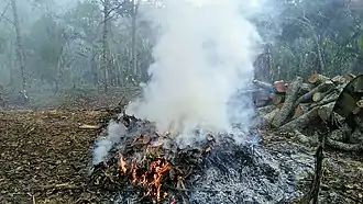 L’agriculture itinérante sur brûlis aussi appelée le « slash and burn » est une technique d'exploitation agricole qui consiste à défricher un pan de forêt par le feu pour le mettre en culture puis en jachère afin de lui laisser retrouver sa fertilité. Lorsqu’il n’y avait que les populations locales qui pratiquaient cette agriculture, cela ne posait aucun problème mais maintenant avec l’augmentation de la population et la production se tournant vers le marché extérieur, les jachères n’ont plus le temps de reconstituer leur couvert végétal. La Lekié (département) en est un bon exemple du passage d’une forêt tropicale humide à une forêt claire[1].