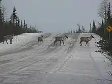 Entre 6 500 et 8 000 caribous forestiers sont recensés au Québec, dont la protection est amoindrie par l'ouverture de la région du Saguenay–Lac-Saint-Jean à l'industrie. Les routes créés pour l’exploitation facilitent le déplacement des prédateurs, notamment du loup[12]. À une petite échelle, ce phénomène est visible dans la région de la Vallée-de-l'Or, qui comprend moins d'une dizaine d'individus en 2020, contre une vingtaine au début des années 2000[13].