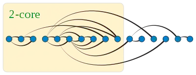 Le concept de k-cœur a été introduit pour étudier la structure des réseaux sociaux[5],[6] et pour décrire l'évolution de graphes aléatoires[7],[8],[9]. On l'a aussi utilisé dans différents domaines de la science des réseaux, par exemple en bio-informatique[10],[11],[12], en visualisation de graphes[13],[14], ou encore en écologie pour étudier la robustesse des réseaux[15].