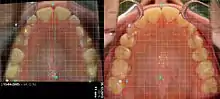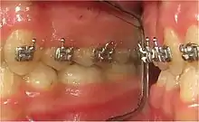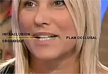 - Des dents verticalement trop petites (infraclusion organique[6],[7]) engendreront toujours un Espace libre[8] trop grand (voir Gnathologie). Ceci entretient, chez l'adulte, le mode de déglutition atypique (infantile) et des béances dentaires[9]. L'ODF n'a pas pour but de modifier l'Espace libre réflexe, mais seulement de perfectionner l'alignement horizontal des dents sur une arcade. Les exercices volontaires de myothérapie fonctionnelle (MTF) sont sans effet sur les causes objectives (étiologie anatomique et fonctionnelle) du réflexe de la déglutition atypique (voir 8.2. Myothérapie fonctionnelle ci-après).