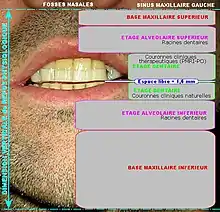 Le potentiel de « croissance » et de « maturation » (Auxologie[27]) concerne aussi le complexe dent-os alvéolaire. Celui-ci est supporté par une base osseuse, maxillaire et mandibulaire. La croissance de la base de la mâchoire inférieure se termine vers l'âge de 17 ans et cette limite du potentiel de croissance de l'os mandibulaire correspond à la fin du pic pubertaire de la vitesse de croissance[27].