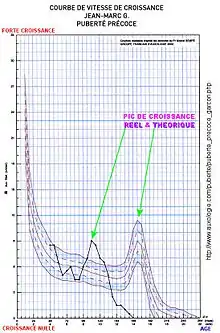 Auxologie[27] (France) : « Le développement d'un enfant jusqu'à l'âge adulte est le résultat de phénomènes de croissance et de maturation. Ces derniers sont essentiels et vont moduler le tempo des différentes phases de croissance[27] (…) La taille cible (…) Sur le fond génétique, familial et ethnique, pratiquement toutes les maladies de l’enfance peuvent limiter la croissance et faire que le potentiel génétique ne puisse être exprimé complètement. Parmi ces maladies, citons :