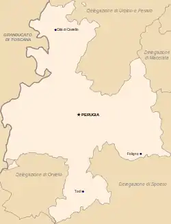 C’était une délégation de 2e classe qui, à la suite de la réforme administrative de Pie IX du , a été fusionnée dans la légation de l'Ombrie (III Légation).