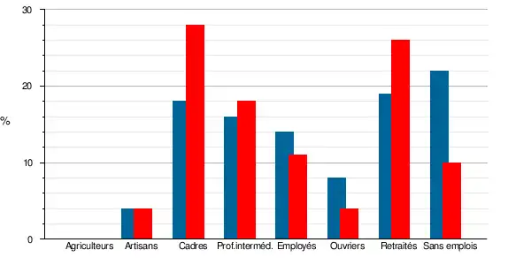 | Artisans, commerçants, chefs d'entreprise | 37 | 4,1 | 32 | 4,3 | 2,8 | 3 | 3,3 | 3,5 |