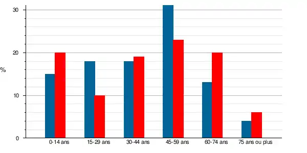 La population a vieilli entre 1999 et 2009, le taux des personnes de 60 ans et plus passant de 17 % à 26 %, à l'instar des populations du département et de la France qui sont aussi passées respectivement de 20 à 23 % pour le Département et de 20 à 23 % pour la France métropolitaine.