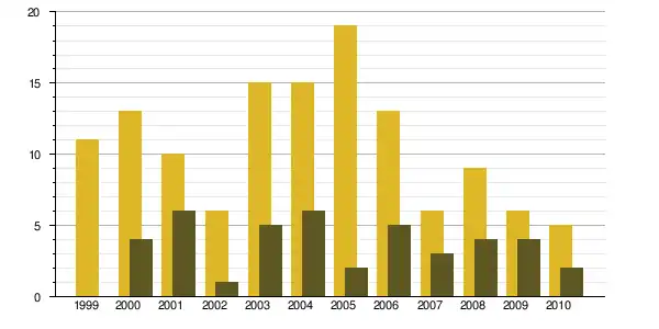 | 1968 à 1975 | 1975 à 1982 | 1982 à 1990 | 1990 à 1999 | 1999 à 2009 | ||