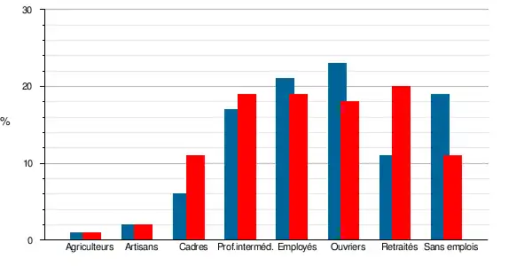| Artisans, commerçants, chefs d'entreprise | 40 | 1,6 | 48 | 2,2 | 2,8 | 3 | 3,3 | 3,5 |