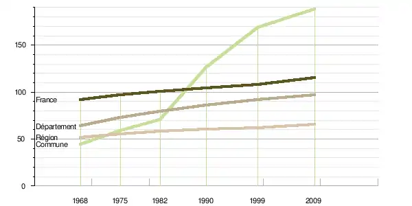 | 1968 | 1975 | 1982 | 1990 | 1999 | 2009 | Évolution annuelle moyenne sur la période 1968-2009 (%) | ||