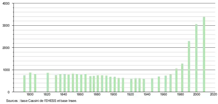L'évolution du nombre d'habitants est connue à travers les recensements de la population effectués périodiquement dans la commune depuis 1793. Après une phase de relative stabilité au XIXe siècle et au début du XXe siècle, la population de la commune a crû fortement à partir des années 1960.