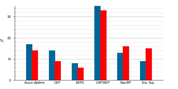 | Titulaires du certificat d'études primaires | 201 | 8,7 % | 259 | 13,5 % | 12,4 | 19 | 11,1 | 17,6 |