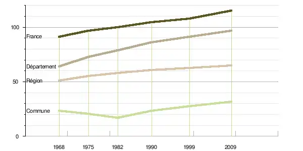 | 1968 | 1975 | 1982 | 1990 | 1999 | 2009 | Évolution annuelle moyenne sur la période 1968-2009 (%) | ||