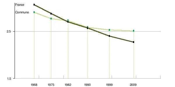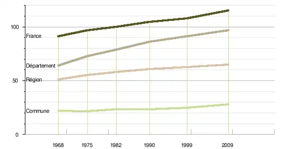 | 1968 | 1975 | 1982 | 1990 | 1999 | 2009 | Évolution annuelle moyenne sur la période 1968-2009 (%) | ||