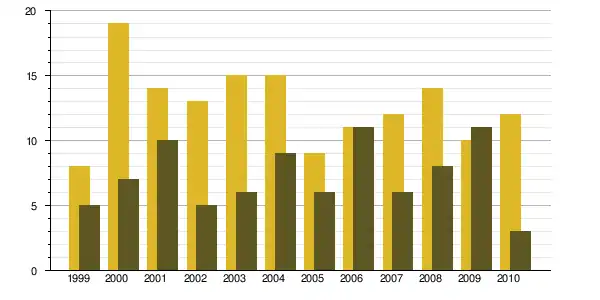 | 1968 à 1975 | 1975 à 1982 | 1982 à 1990 | 1990 à 1999 | 1999 à 2009 | ||