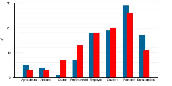 | Artisans, commerçants, chefs d'entreprise | 20 | 2,8 | 24 | 3,5 | 2,8 | 3 | 3,3 | 3,5 |