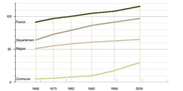 | 1968 | 1975 | 1982 | 1990 | 1999 | 2009 | Évolution annuelle moyenne sur la période 1968-2009 (%) | ||