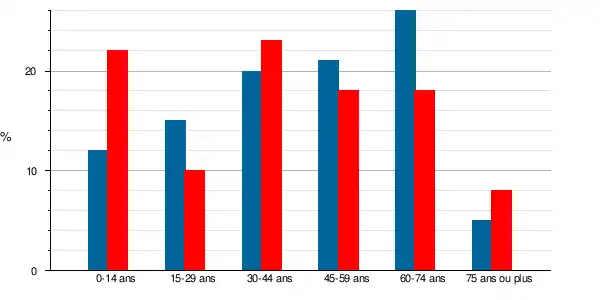 La population s'est rajeunie entre 1999 et 2009, le taux des personnes de 60 ans et plus passant de 31 % à 26 %, alors que parallèlement les populations du département et de la France ont quant à elles vieilli, passant respectivement de 20 à 23 % pour le Département et de 20 à 23 % pour la France métropolitaine.