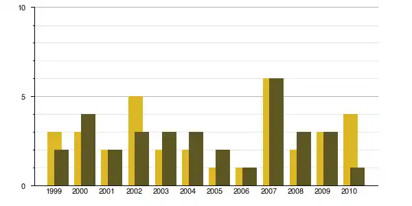 | 1968 à 1975 | 1975 à 1982 | 1982 à 1990 | 1990 à 1999 | 1999 à 2009 | ||