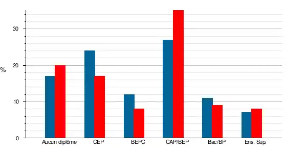 | Titulaires du certificat d'études primaires | 35 | 16,7 % | 33 | 23,7 % | 12,4 | 19 | 11,1 | 17,6 |